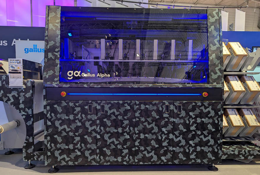 Den andre pressenyheten var Gallus Alpha, en rull-til-rull-presse som er rent digital og en slags inngangsmodell for de som ønsker å investere i digitalt. Det er en presse som er spesielt egnet for litt kortere serier med fokus på handel, legemidler og logistikk. Den kan konfigureres for fire farger pluss hvitt eller med seks farger pluss hvitt. 1200 x 1200 dpi og en hastighet på 65 meter per minutt.