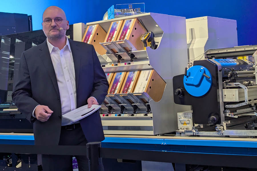 – Dårlig luftkvalitet var en av grunnene til at Labelexpo forlot Brüssel, og her er vi nå i en hall med temperaturer som nærmer seg førti grader celsius, uttalte Dario Ubinato, administrerende direktør i Gallus Group, med et smil i starten.