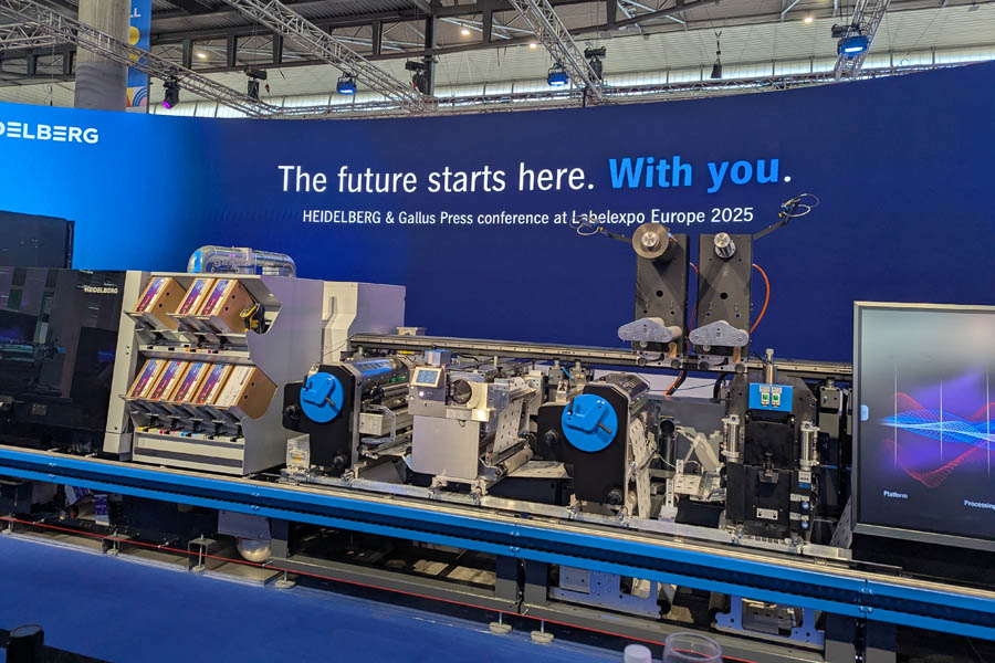 Heidelberg/Gallus-standen på Labelexpo var fullpakket til randen da pressekonferansen ble innkalt. Varmen var til å ta og føle på som følge av det ødelagte klimaanlegget i hallen, men journalister er en hardfør rase og lærte mye om de to nye produktene som ble presentert, Gallus Five og Gallus Alpha.