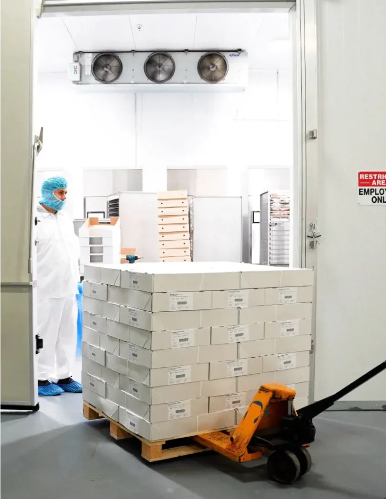 Emballasjeløsningen til fiskeprodukter er laget etter skoeskeprinsippet og er derfor enkel å sette opp og pakke sammen. Den erstatter også behovet for paller i transport og gir økt effektivitet i logistikken.